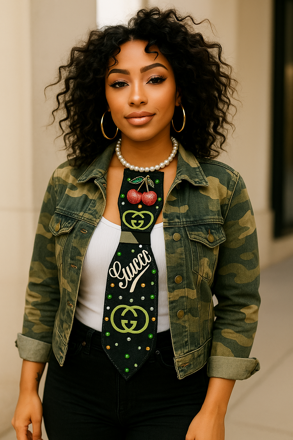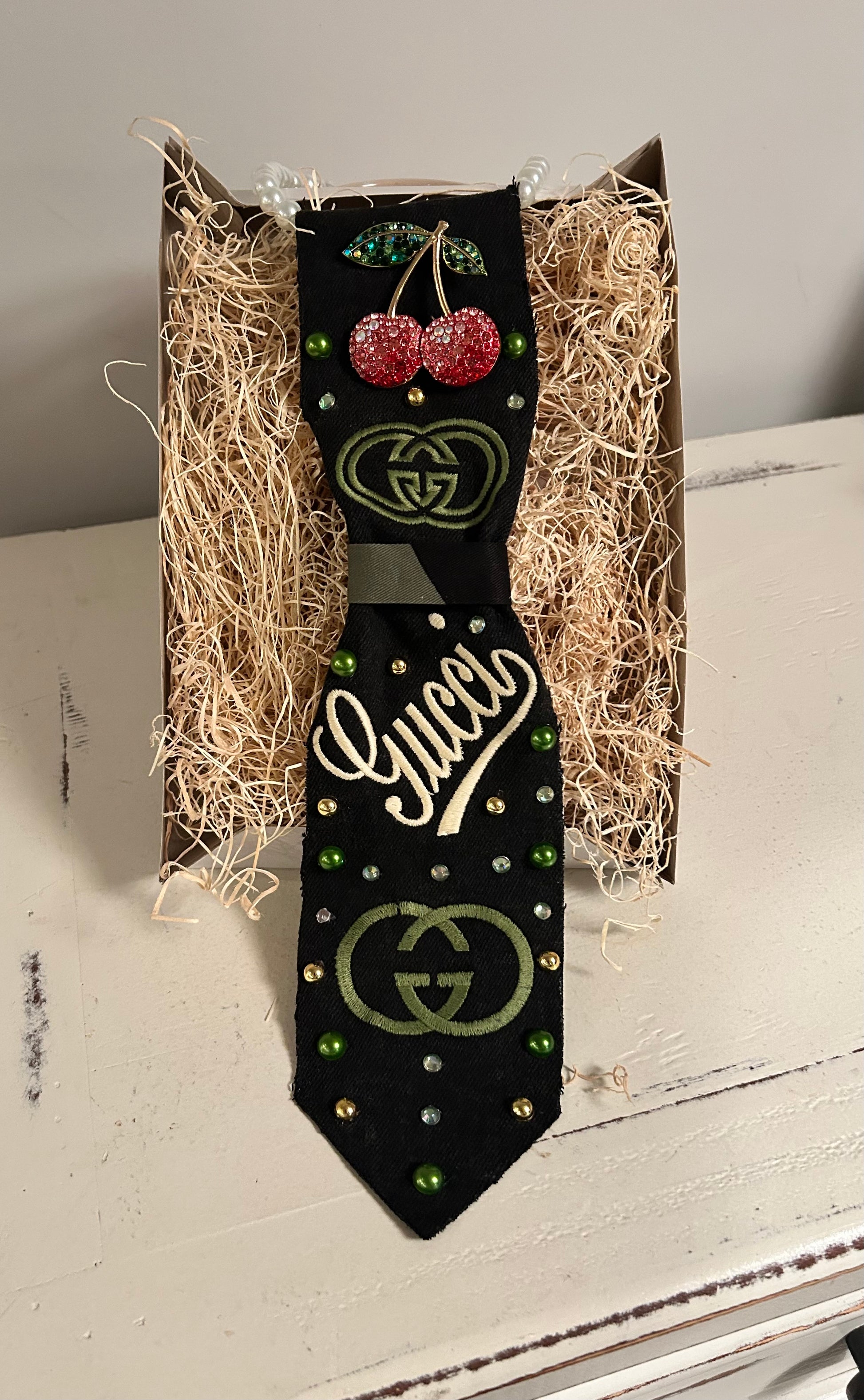 Handmade no-sew embroidered necktie featuring a matching brooch and necklace. Each tie is individually crafted, so no two are exactly alike — making every piece unique. The embroidery design stays consistent with the style you choose for a polished, custom look.