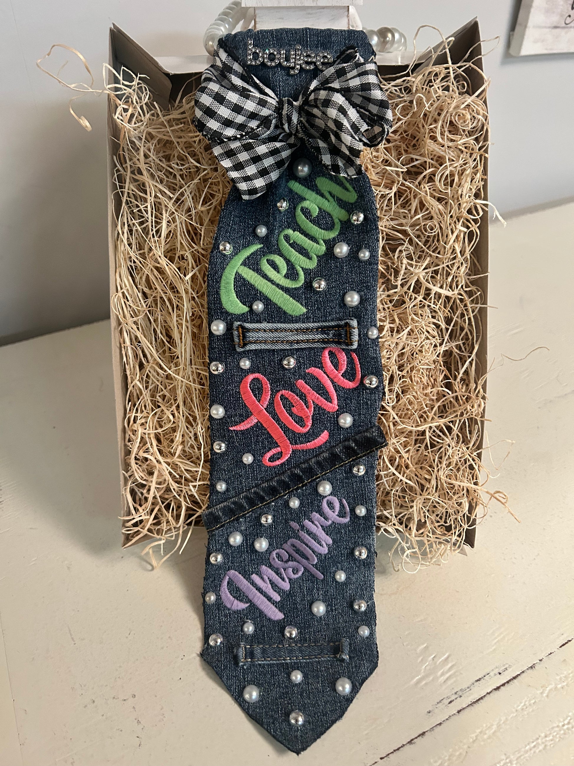 Handmade no-sew embroidered necktie featuring a matching brooch and necklace. Each tie is individually crafted, so no two are exactly alike — making every piece unique. The embroidery design stays consistent with the style you choose for a polished, custom look.